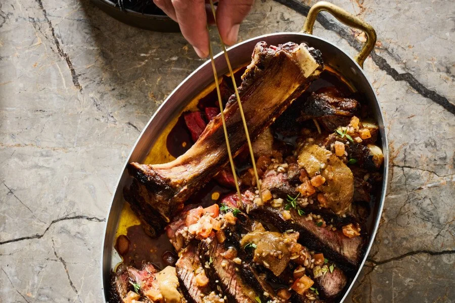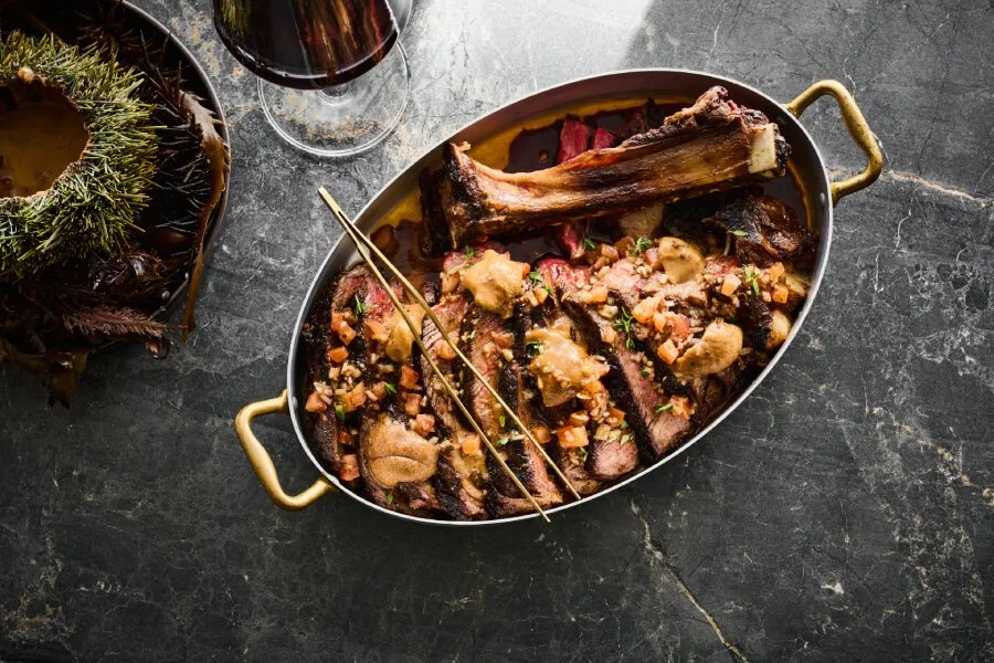 Bone-in ribeye, Tora Bay kina and smoked bone marrow butter, lemon